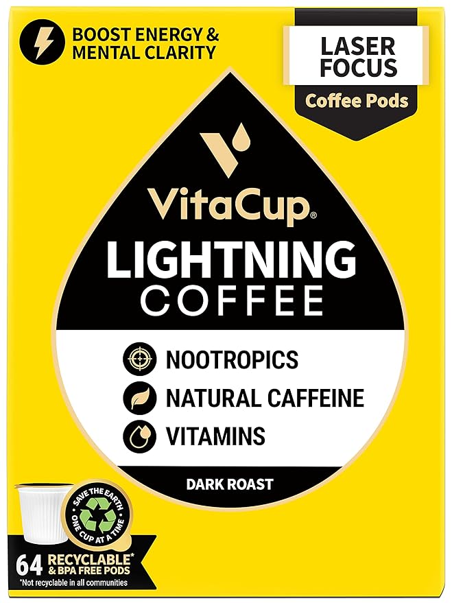 Amazon Com Vitacup Lightning Blend Nootropic Vitamin Infused Coffee Pods Intense Energy Focus 2x Caffeine Vegan Vitamin B1 B5 B6 B9 B12 D3 Compatible K Cup Brewers Including Keurig 64ct